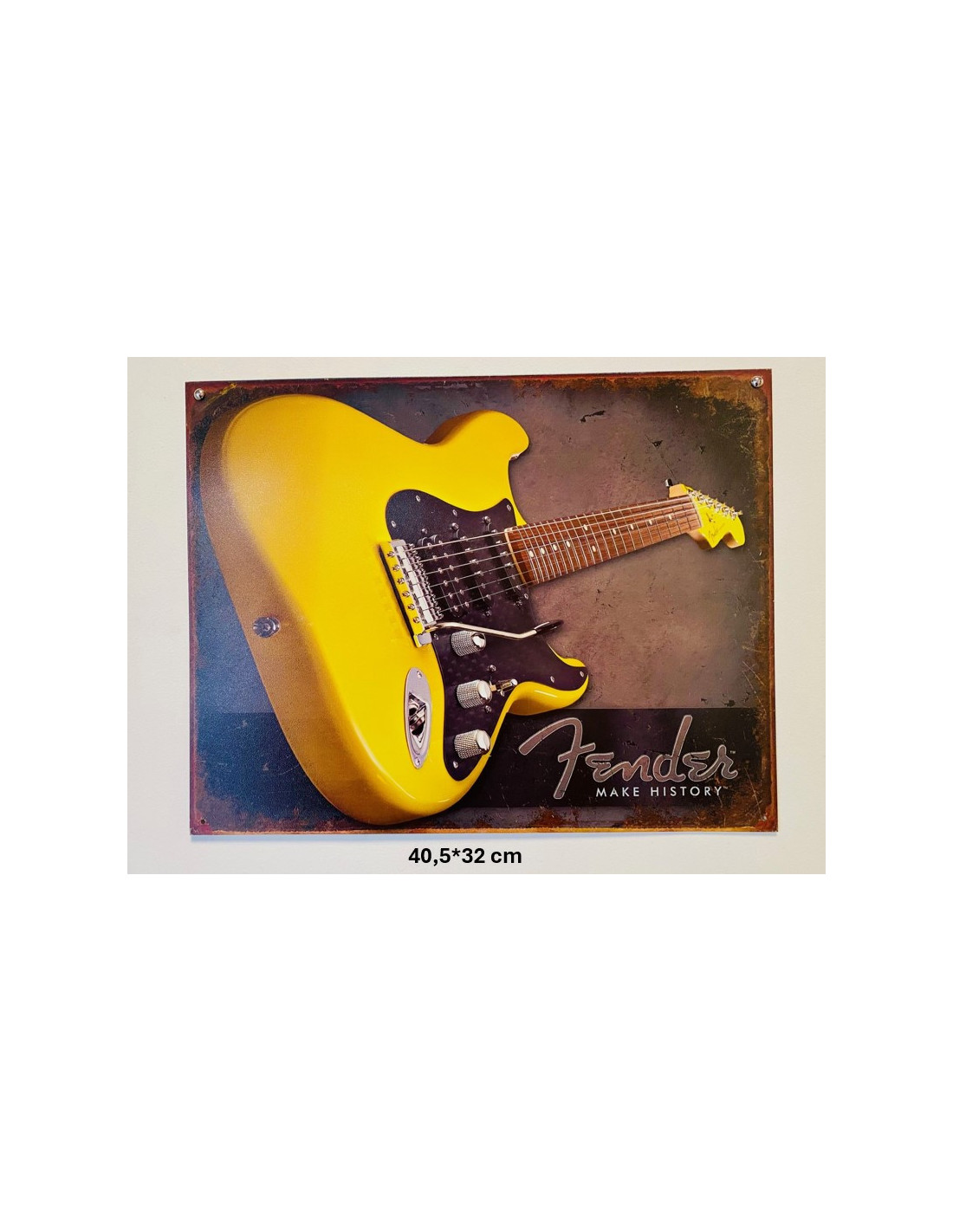 Plaque Métal décorative guitard jaune 40.5 x 32 cm - CHR Appro
