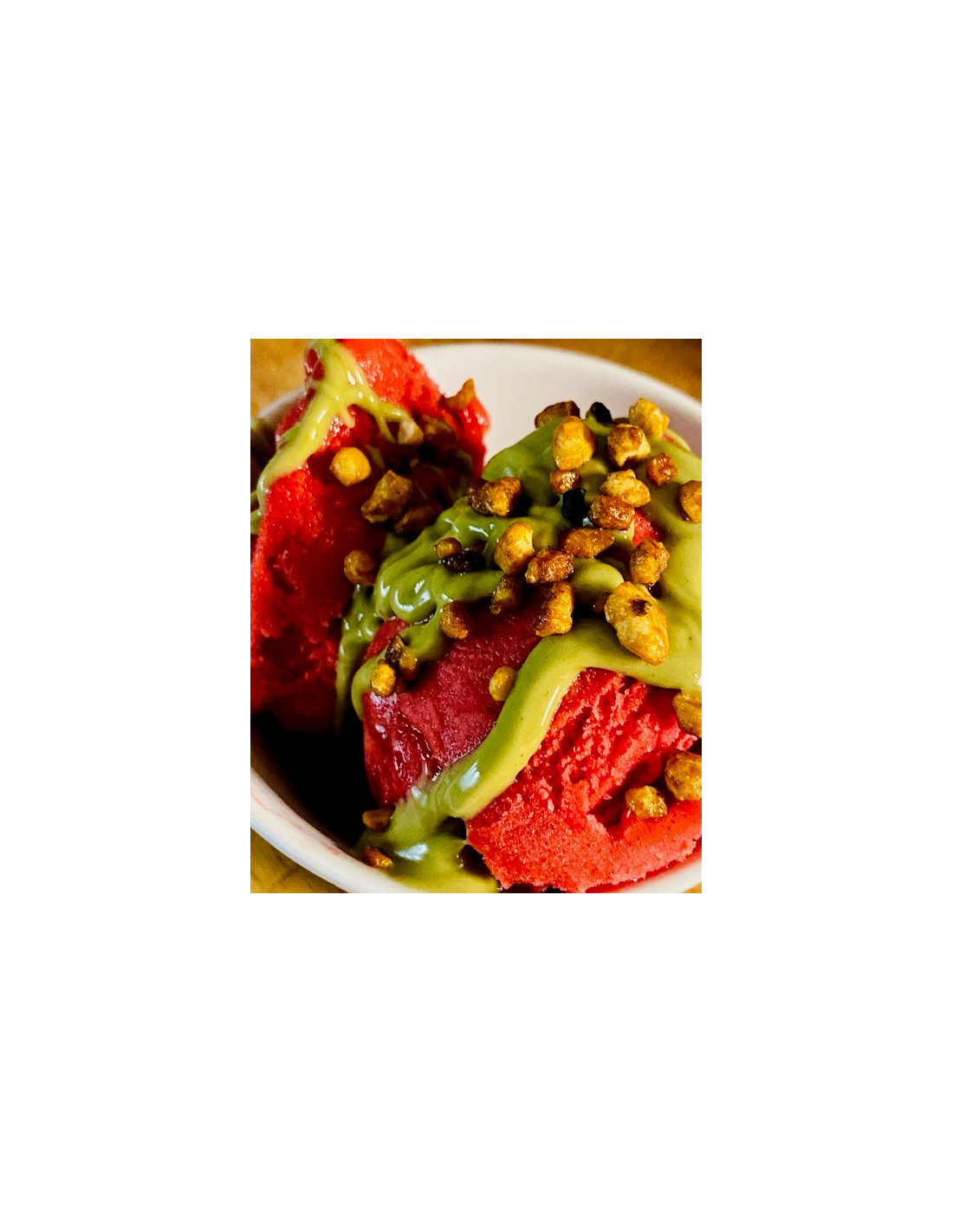 Grâce à sa teneur en pistache 17%, ce topping apporte une vraie signature aromatique, parfaite pour valoriser votre carte avec des toppings premium. Son format 900g est adapté aux services intensifs : bon rendement, dosage simple et gain de temps en préparation.